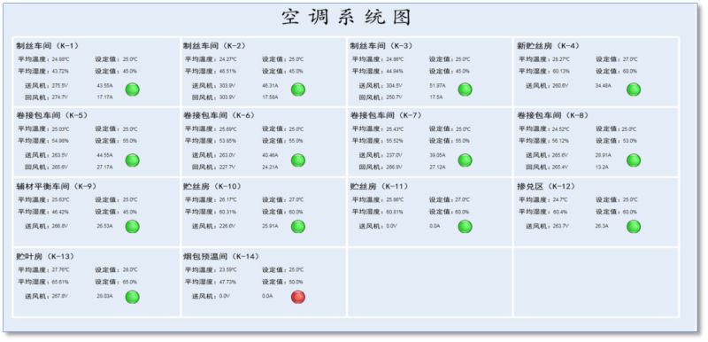 综合管控厂区平均温湿度,温湿度传感器多点平均分布,定点监测,保障温湿度要求。